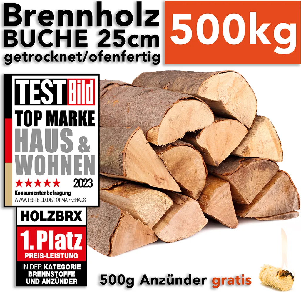 holzbrx Brennholz Buche 500kg 25cm ofenfertig kammergetrocknet auf Palette <18% Restfeuchte